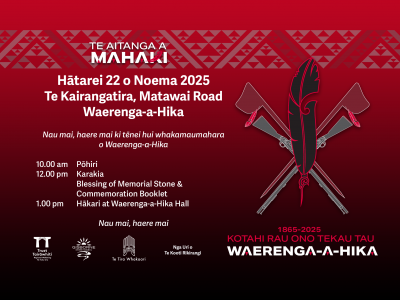 Te Aitanga a Mahaki extends an invitation to our whanau, marae, hapu, and iwi of Turanganui-a-Kiwa to join with us to host the 160 year commemoration of Waerenga-a-Hika.